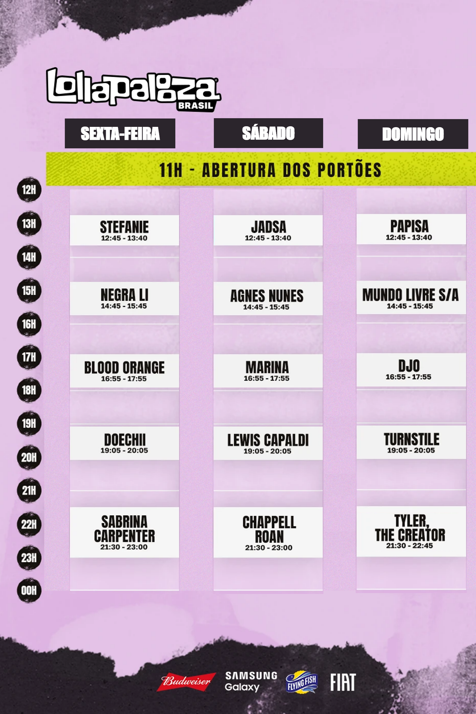 O Palco Budweiser, receberá apresentações de grandes artistas como Sabrina Carpenter, Doechii, Chappell Roan e Tyler, The Creator. O local também é conhecido pelos shows históricos que já recebeu. Equipado com telões laterais e um sistema de som poderoso, o espaço garante uma experiência única até para os espectadores mais distantes do palco.